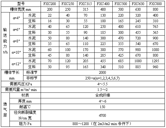 ■風(fēng)送斜槽主體部分無傳動部件,密封操作管理方便,設(shè)備重量輕,電耗少,輸送能力大,容易改變輸送方向,采用新型透氣層。