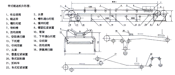 托輥是用無縫鋼管制成,類型有:槽形、平行,調心,緩沖四種,拉緊裝置:螺旋式拉緊裝置適用于長度較短(小于100m),行程有500m、800m、100mm三種;垂直重錘拉緊裝置,可隨著張力變化靠重力自動補償輸送帶的伸長;重錘車式拉緊裝置適于距離較長,功率較大的輸送機,其拉緊行程有2,3,4m三檔,固定絞車拉緊裝置用于長行程大拉緊力(30-150KN),長距離,大運量的帶式輸送機,最大拉緊行程可達16m。