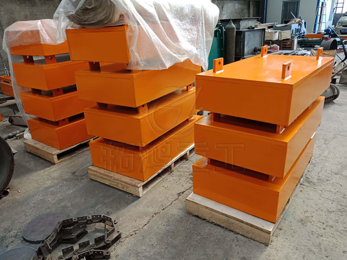 RCYB懸掛式永磁除鐵器內(nèi)部采用高矯頑力,高剩磁的特殊永磁體“釹鐵硼”等材料組成復合磁系。具有磁力強、壽命長、安裝簡單、使用方便、運行可靠等特點,適用于皮帶機、振動輸送機、電磁振動給料機、下料溜槽上的非磁性物料中除鐵。